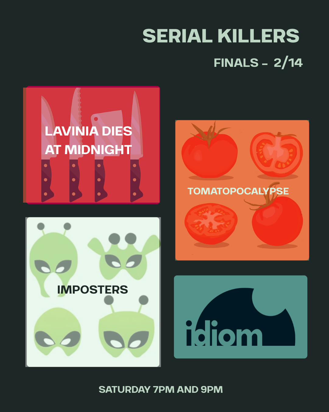 A tournament of serial theater where teams compete to tell their stories in the form of episodic theater.